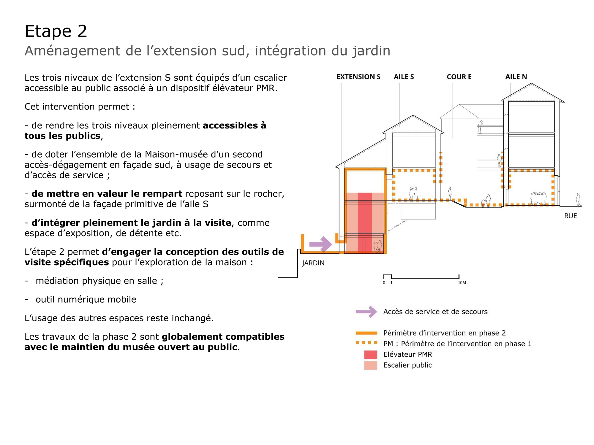 La mission permet de préciser l’intérêt patrimonial du monument, d’esquisser les conditions de repositionnement de l’établissement et les modalités de redéploiement de la visite et des services du musée. Elle ouvre la voie à une extension du classement MH et à la mise en place des conditions opérationnelles du projet.